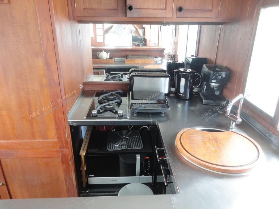 Separate interior steering gear with kitchen annexes and seats convertible to berth