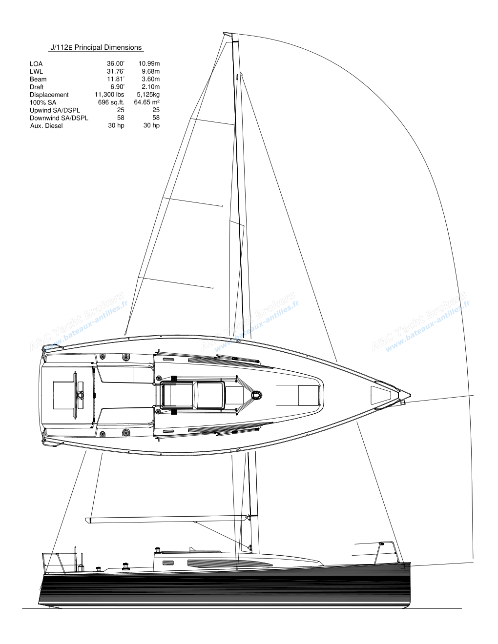 200.00 L36 feet is a magic size in the J-Boats line-up. With a spacious 2-cabin accommodation plan and a comfortable, ergonomic cockpit, the J / 112 E is as well suited for the annual cruise as she is for sprinting to Mackinaw Island or short-handing through rough weather.