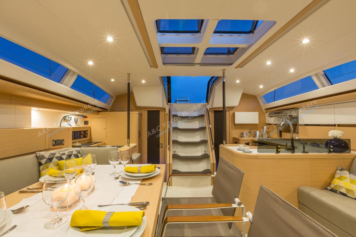 Welcome to a new style of contemporary interior that reflects a long nautical heritage. Rich materials are found throughout including leather, blond teak flooring and stainless steel. Sleek windows and skylights bathe the interior in light.