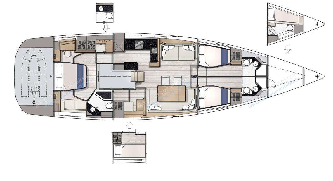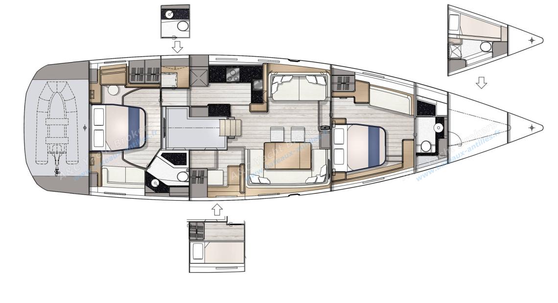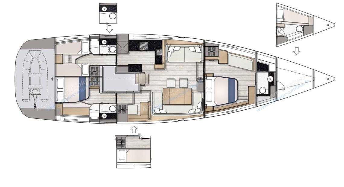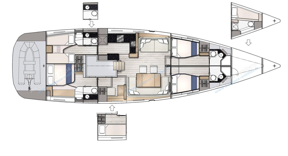 Jeanneau Yacht 65 : 4 cabins (or 5) 4 heads (or 5)