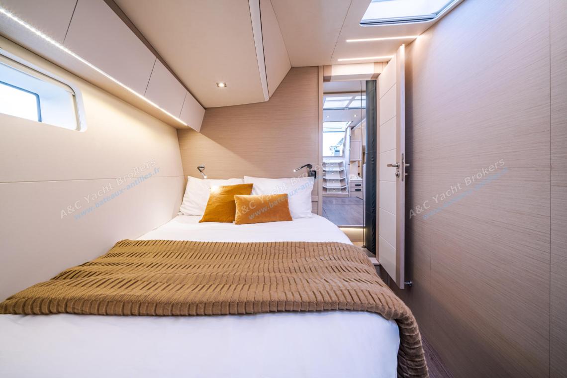 The circulation, access to maneuvers, storage and comfort at sea as well as at anchor have been thought out in the smallest details: a transom that can be transformed into a huge bathing platform to access the dinghy garage, XXL cockpit equipped with tables that can be lowered electrically to convert into a sunbathing area, fluid circulation on the flush deck....