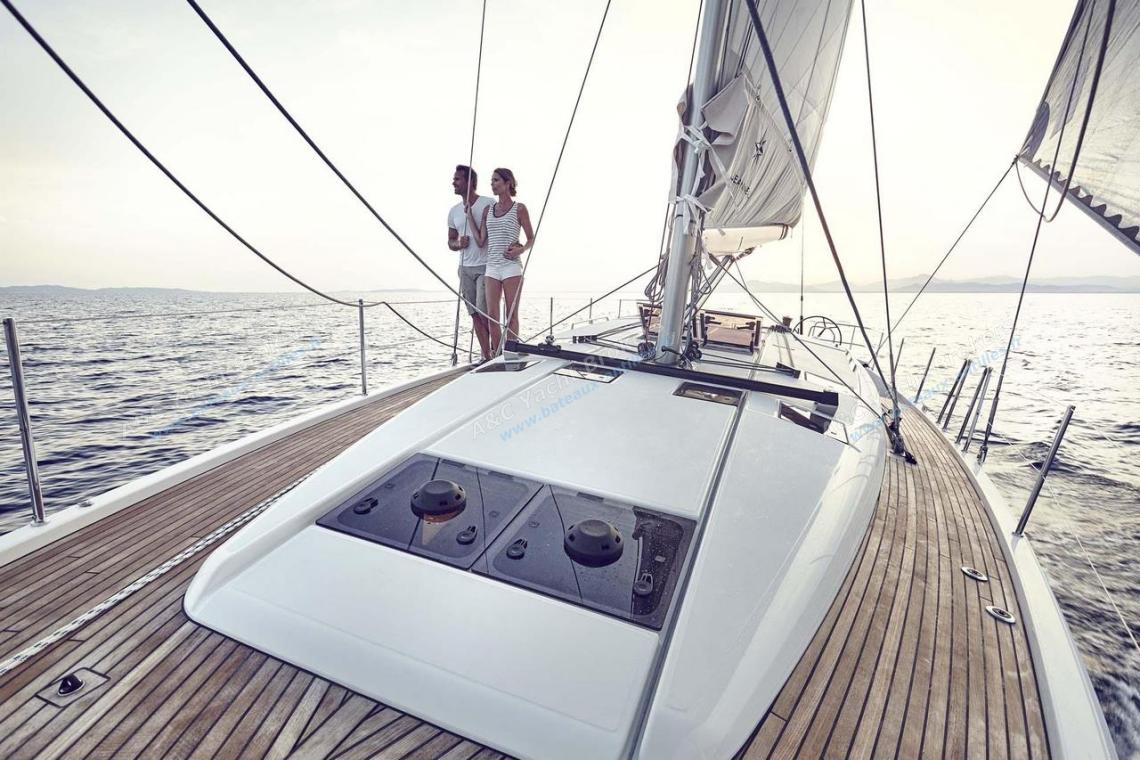 This yacht is fast and quick. Manoeuvres are simplified for safe sailing, thanks in particular to the sheets brought back to the cockpit to be managed from the helm. The unobstructed visibility from the cockpit also makes for easy sailing.