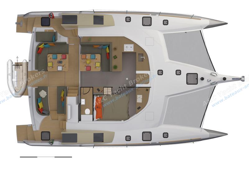 The owner's cabin on the same level benefits from natural light and therefore an exceptional view. The sliding partitions and the large bathroom in the central float complete this unique ensemble.