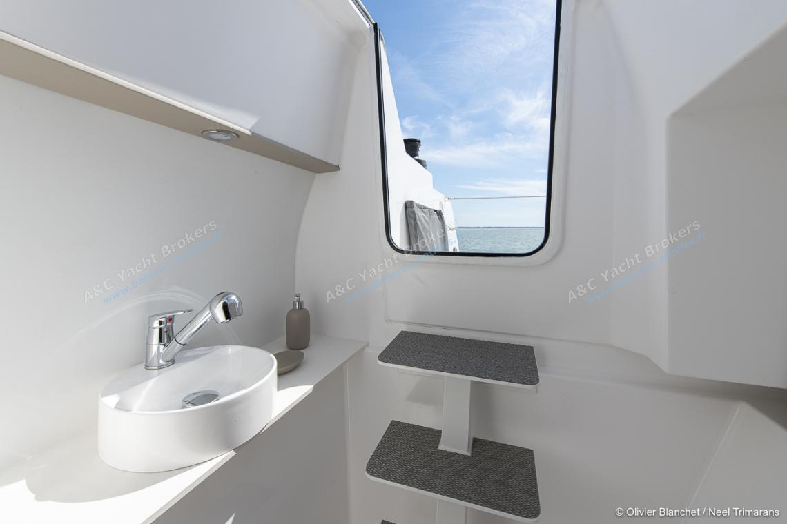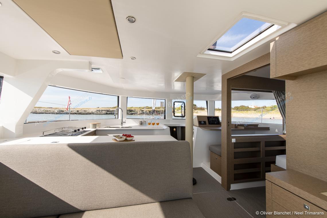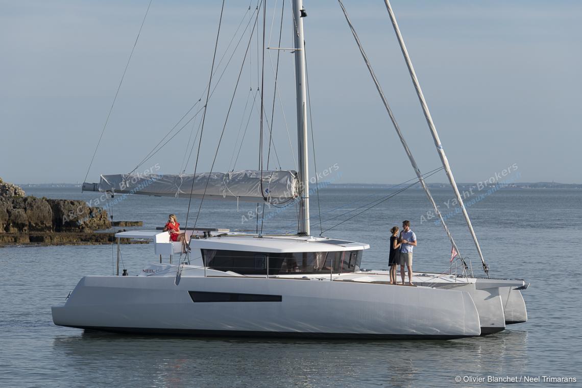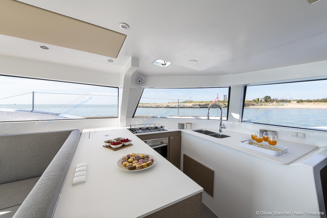 With a living area of 83 m2, a full width cockpit and a sea-facing galley with a panoramic view, this NEEL trimaran is sure to surprise you.