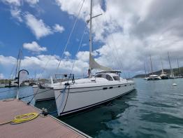French flag, this cruising catamaran is currently available for viewing in Martinique.
