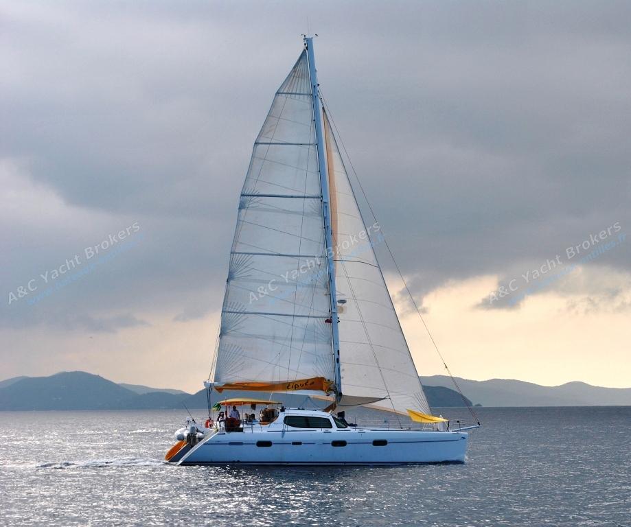Privilege 585 was built in 2005. She is the ideal luxury catamaran with all the conveniences of a modern yacht. She meets the highest quality standards for optimum cruising safety and comfort in the tropics. This sailing boat is fully air conditioned, has beech wood interiors and beige leather furnishings which combine together to create an atmosphere of luxury, space and light.