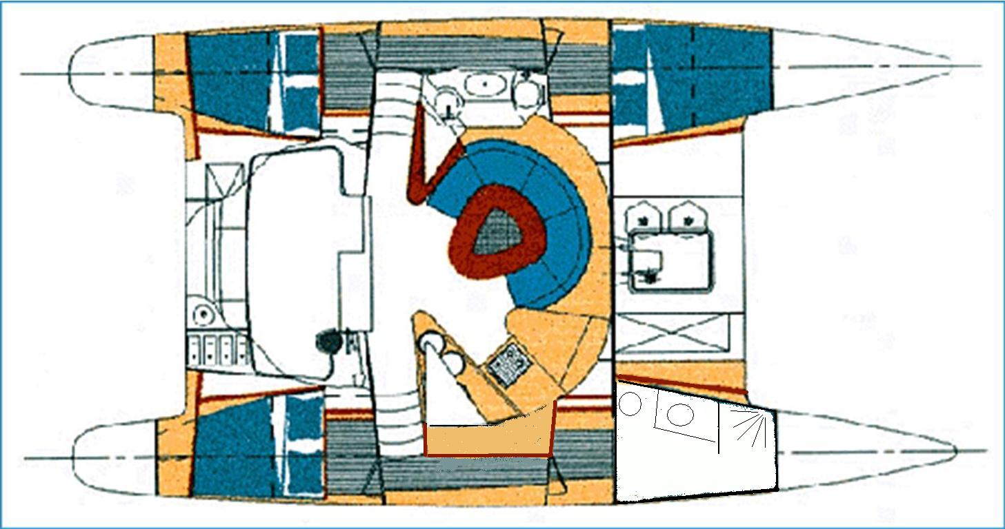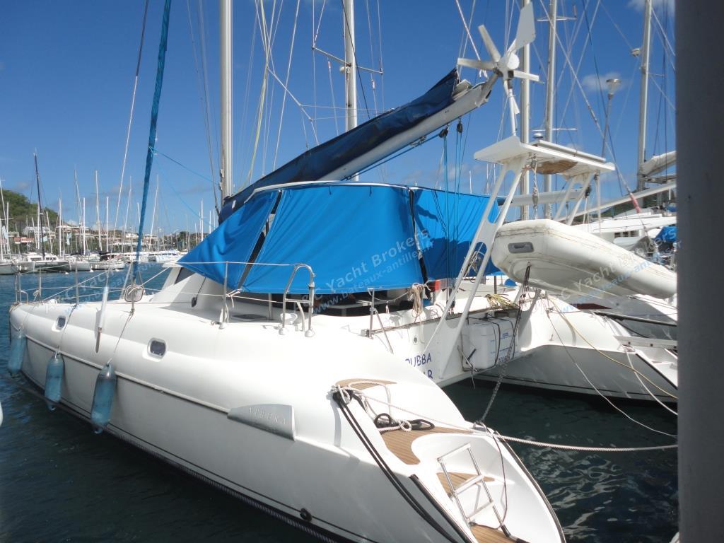 Athena 38 Maestro constructed in 1996 by the Fountaine Pajot shipyard. This is the 3-cabin version, a privately-owned catamaran, in good condition and dock dues have already been acquitted. Her fractionnal rigging, sleek lines and excellent performances under sail have all given her an excellent reputation among cruising boats.