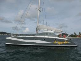 This Punch 12.50 DC was constructed in 2008 by the Multicap Caribbean shipyard in Martinique. She has just been completely overhauled by her owner, the hull and deck paint was redone in February 2021, making this cruising catamaran perfectly suited for sailing in the Caribbean with family.