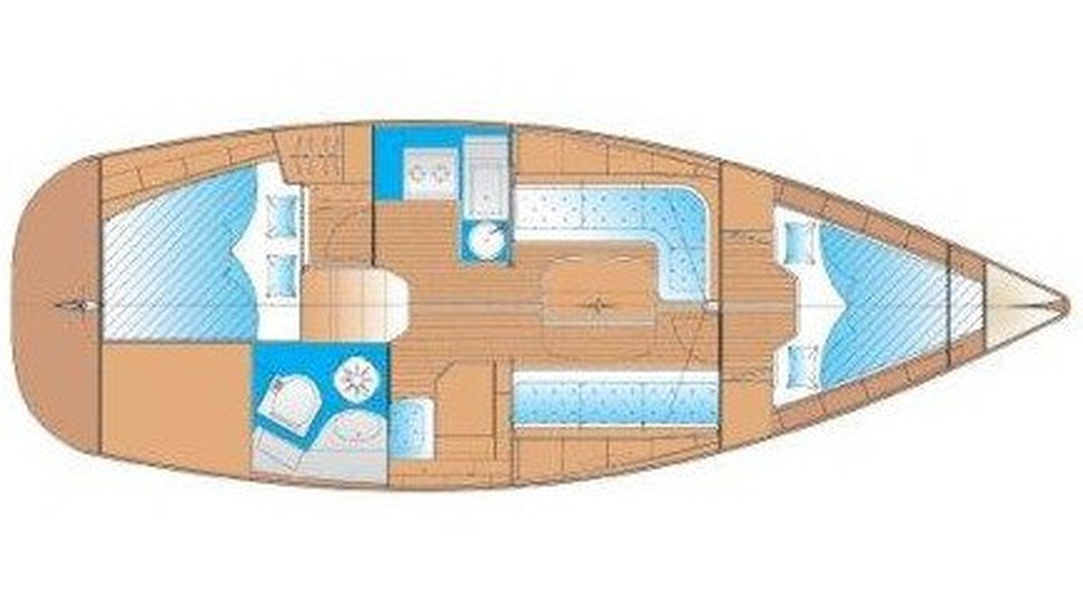 Two double cabins version, one convertible saloon and a functional bathroom, which can comfortably accommodate up to 6 people.