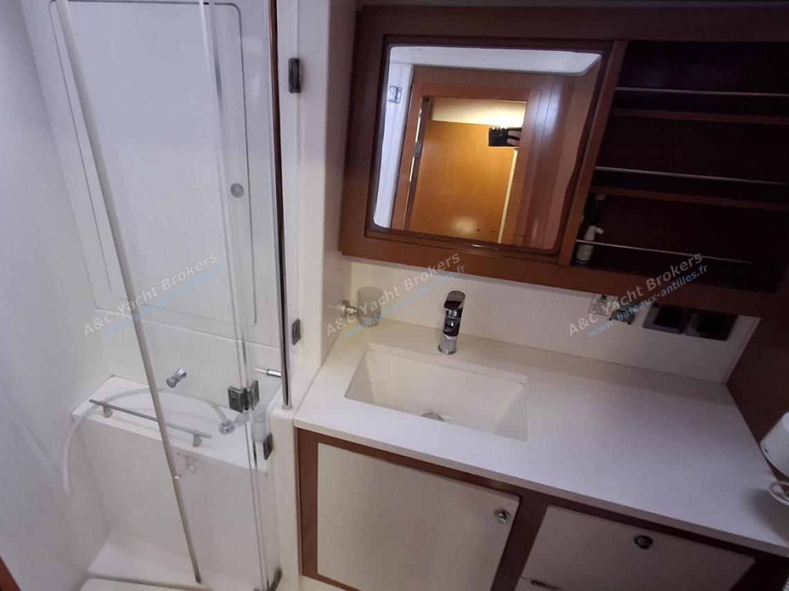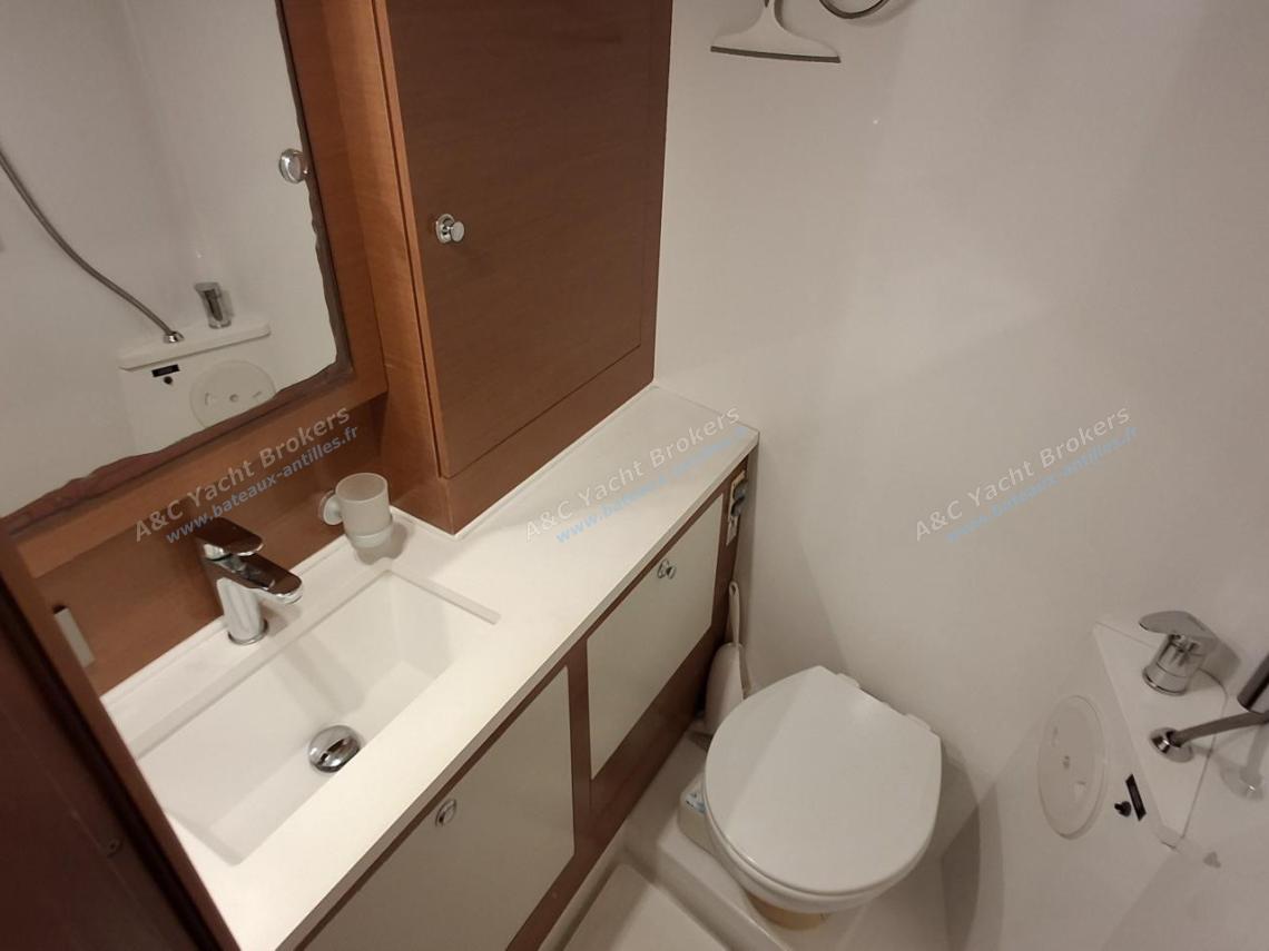 Two forward double cabin, with private shower room, wash basin, and electric toilet