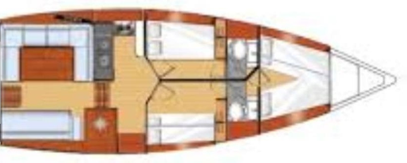 2 shower rooms with washbasin, shower and marine toilet Aft panoramic saloon with table and settees 1000 L water tank Pressurized hot and cold water Water heater 50 L / 220 V and engine-driven