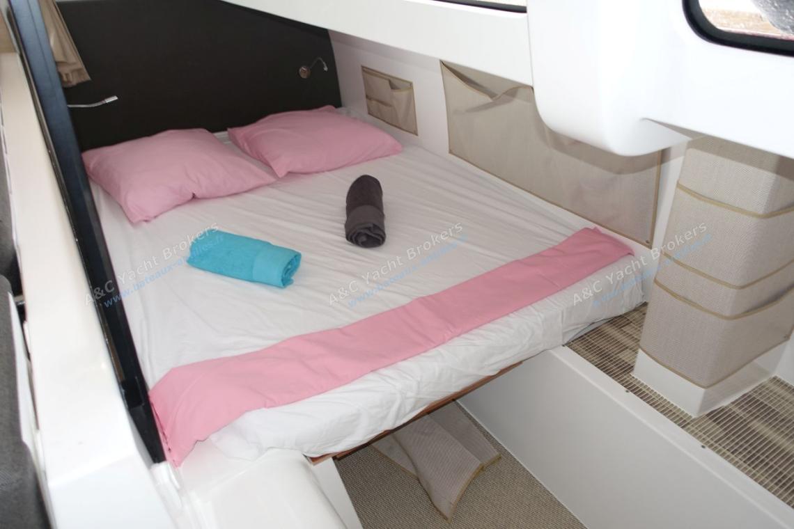 One double berth on the port side accessible from the saloon (separated by glass + curtains)