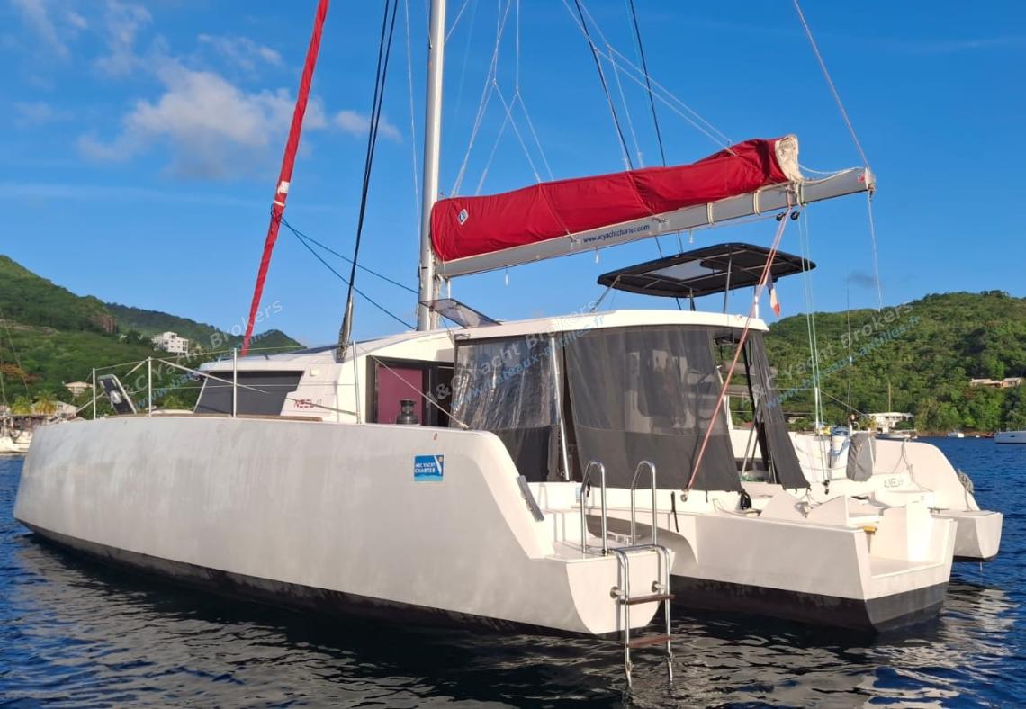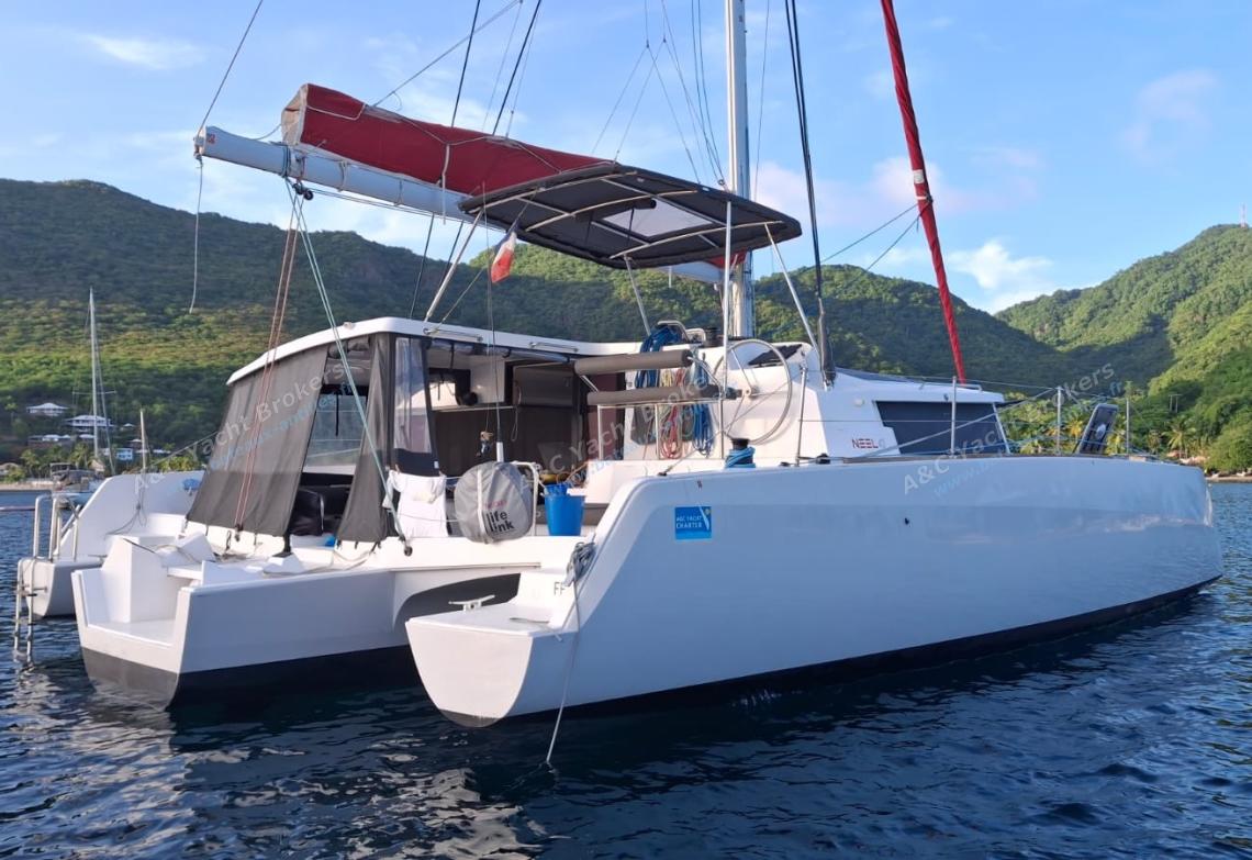 This Neel 43, which arrived in the West Indies on a cargo ship, is a modern cruising trimaran built in 2021 by the French shipyard Neel Trimarans